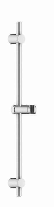Adjustable chrome shower rail with flexible fixing points. Handset height position can be moved by depressing finger grips on the holder with angular adjustment by pivoting knuckle in the holder. Supplied with end caps