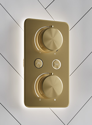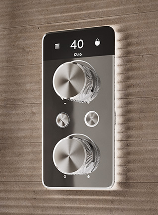 The S1 smart shower blends refined design with intuitive operation. Illuminated dials and push buttons make it simple to use, while smart connectivity allows you to start your shower remotely using: